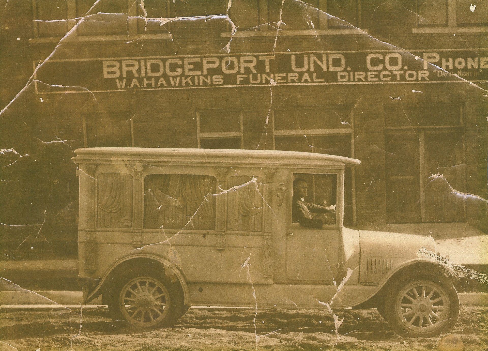 In the late 1800s, W.A. "Alf" Hawkins was a barber in Bridgeport. In those days, the local funeral director would call a barber to shave, bathe, and cut the hair of a loved one. That's when Alf Hawkins first began his experience with a funeral home.